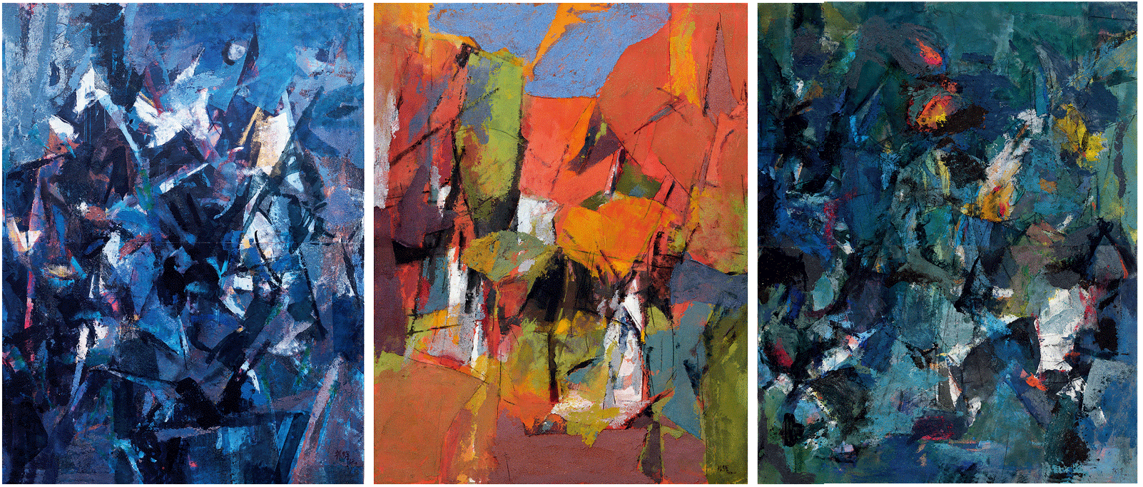 闫振铎这半个多世纪的创作生涯中,他使用过各种表现手法,尝试过各种表现形式,但从没有停留在某一个风格样式中,并固定下来。也就是说,他并不在“写实到抽象”这样一个大范围认定的“艺术发展的规律”之中。用他自己的表述就是“我的所有作品都是我的生命状态的体现和表达,哪种方法适合我当时的表达,我就用。写实、表现、抽象,各种材料工具,这一切只是呈现我生命状态的手段。”这样的创作思想,就不难理解他在七十年代那个特殊时期,在绘制“铁人王进喜”的同时也在尝试抽象意味的创作;在如今大宗抽象创作的同时,却会花十多年的功夫绘制具象写实的《银锭桥》;疫情期间还能尝试用岩彩绘制的写实风景《凤翔灵山》……