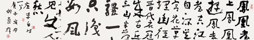 我觉得胡崇炜的书法之路,就是“胡乱”走过来的,先由唐楷起步,而后魏碑,而后唐楷魏碑交融,而后魏碑融于章草,而后章草今草交融,而后……谁知道而后他还会有哪种“胡乱”的举动,只要“胡乱”坚持,“水到渠成”就指日可待。