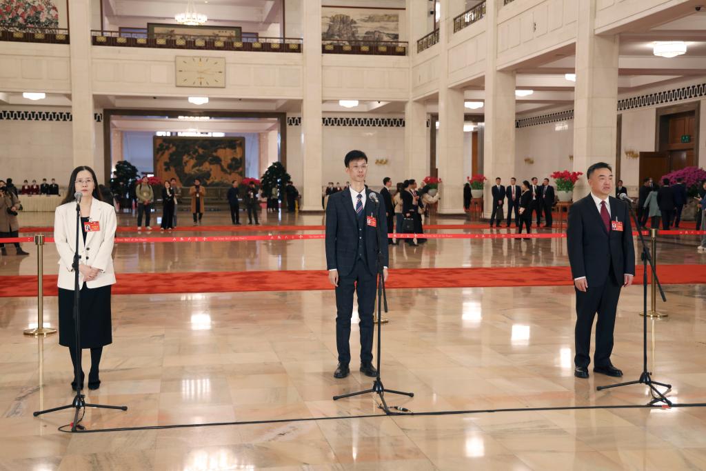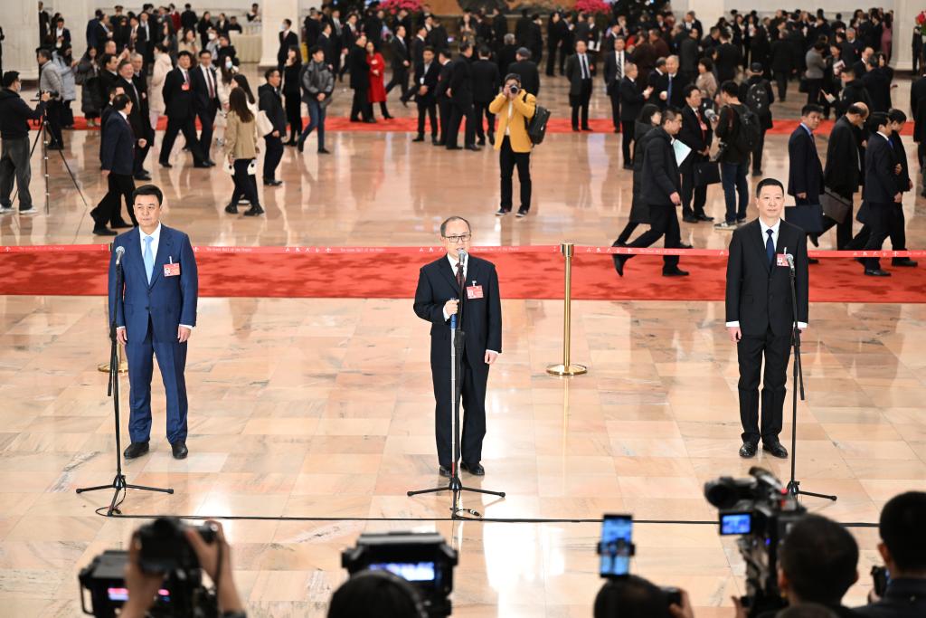 3月4日,全国政协十四届二次会议首场“委员通道”集体采访活动在北京人民大会堂举行。