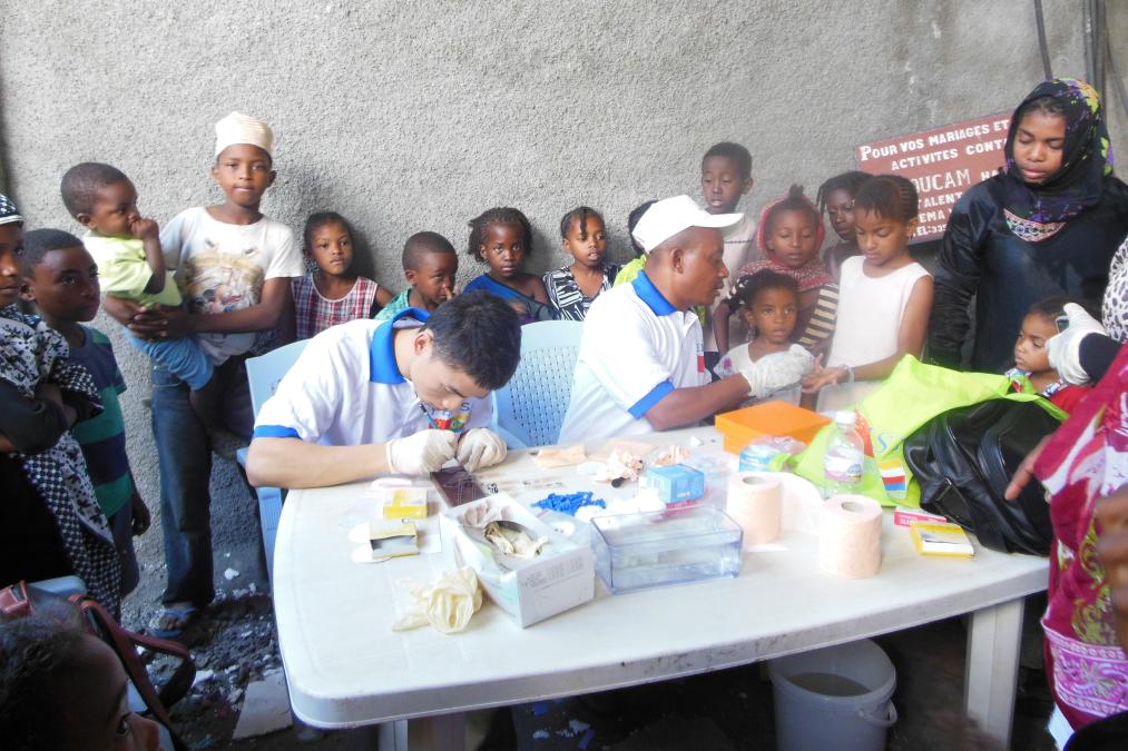 广州中医药大学青蒿抗疟援外医疗队在科摩罗进行疟疾带虫率调查。