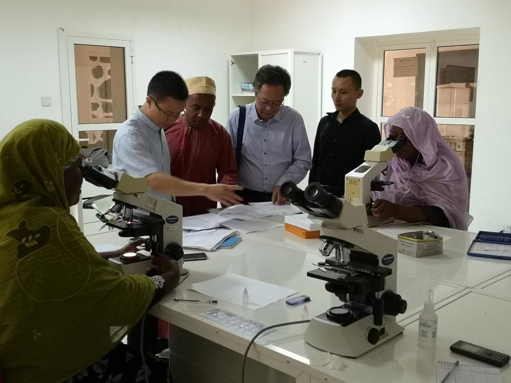 广州中医药大学青蒿抗疟援外医疗队考察科摩罗国家疟疾防治中心实验室。
