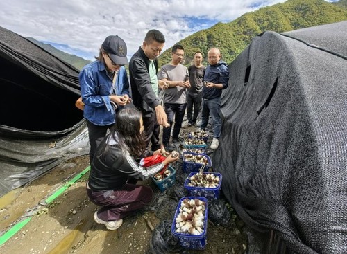 四川省阿坝藏族羌族自治州金川县勒乌镇新开宗村高山赤松茸和反季节贡菜采收忙
