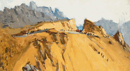 新中国成立后,油画因其色彩浓郁、视觉冲击力强等特征成为展现时代特色的重要表现方式,革命历史题材也成为油画家艺术探索的开端与重要创作方向。“当我们想见前人那逐渐远去的依稀身影时,当会记住他们艰难的足迹踏过之路的意义。”钟涵真切地体会到了革命历史的壮烈坚毅与新时代的美好生活,这也激发了艺术家描绘革命先辈的激情,抒发胸中的爱国热情。