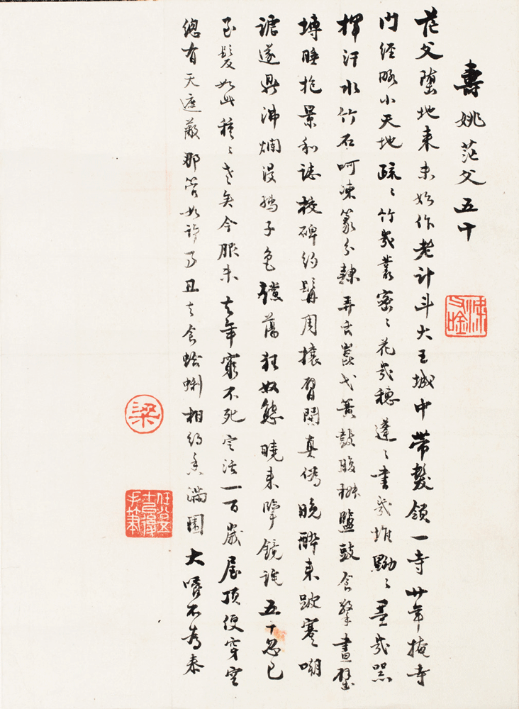 《寿姚茫父五十》诗稿(书法)31×22.7cm 1925年 /梁启超