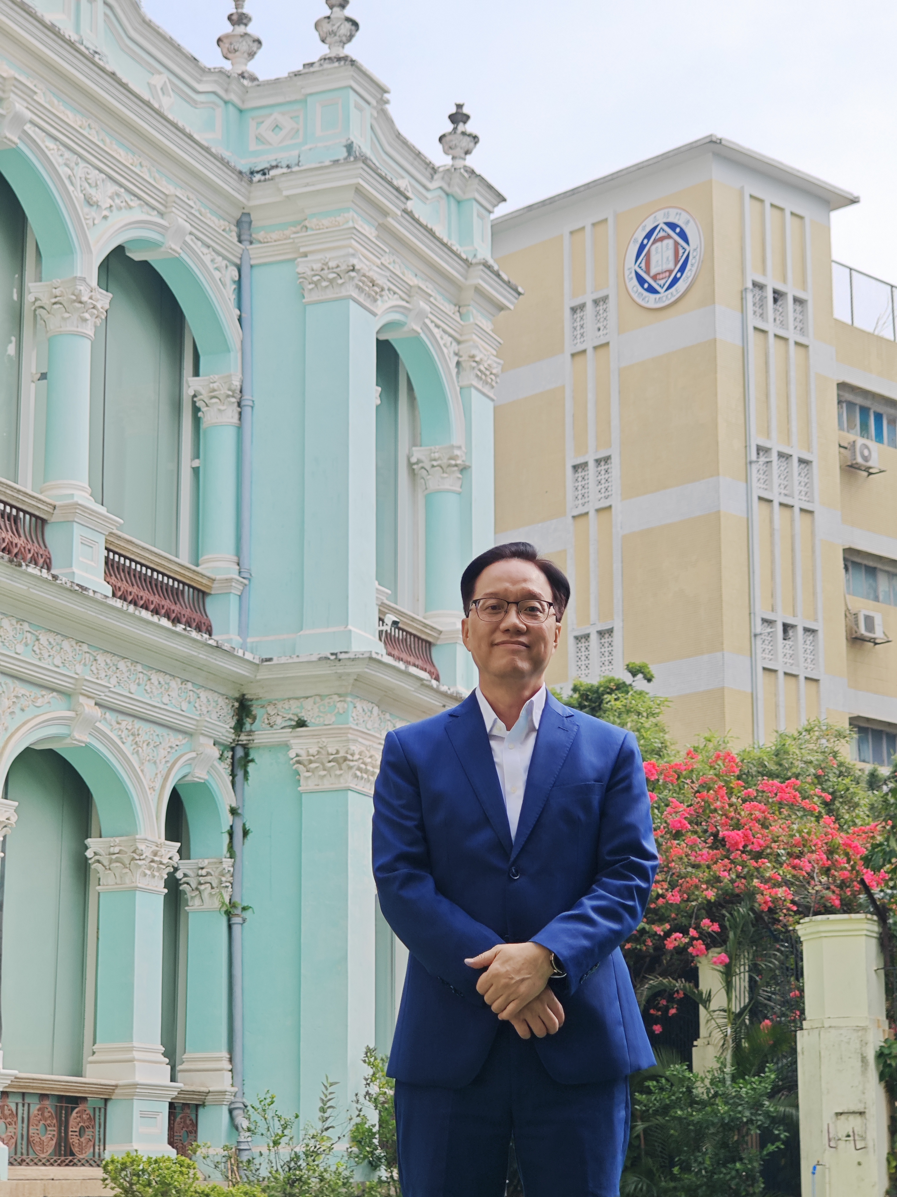 与这两幢见证澳门历史的大楼合照,高锦辉由衷感慨道:“与国偕行,与校偕行。我是培正中学毕业的,在培正中学工作了40年,今年正好60岁。有幸见证澳门回归祖国前后诸多高光历史时刻,也见证了祖国和澳门的腾飞巨变,与有荣焉。”