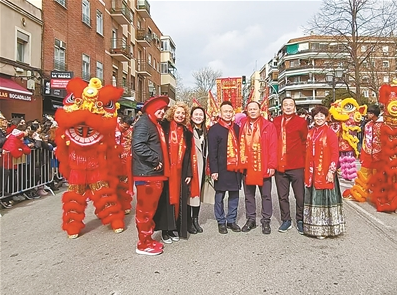 朱晓海回忆,那一年春节,在马德里市乌塞拉区,到处高挂着红灯笼,舞狮、舞龙表演尤其吸引民众围观。此外,十几个摊位出现在庙会上,售卖中国特色的小吃、手工艺品和春节纪念品,让华侨华人找到了记忆中的年味,也满足了大量慕名而来的西班牙当地人。“他们也尝试着包饺子、写‘福’字,对中国文化表现出了浓厚的兴趣。”朱晓海笑着说。