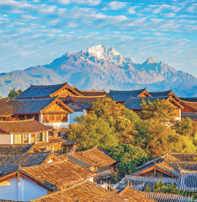 从高处俯瞰,丽江古城并不追求方正规整,城镇布局随形就势,高低错落的屋顶轮廓勾勒出不拘一格的线条。近年来,丽江持续加强文化遗产保护和活化利用,坚持保护第一、修旧如旧,恢复性修缮了具有历史文化保护价值的传统民居299户、院落236个。