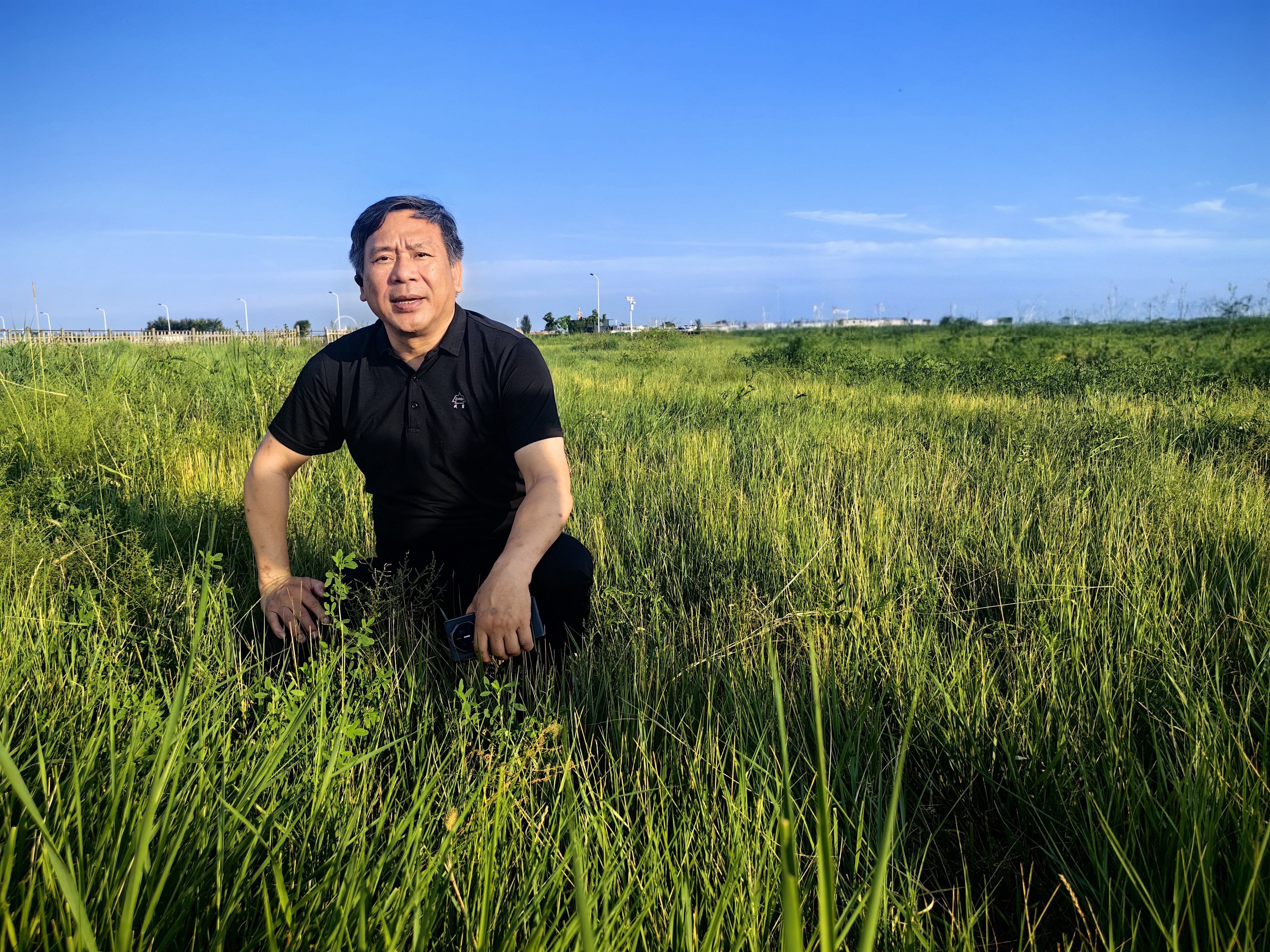 杜志雄身处草业研发中心改良后的草地。(图片由受访者提供)