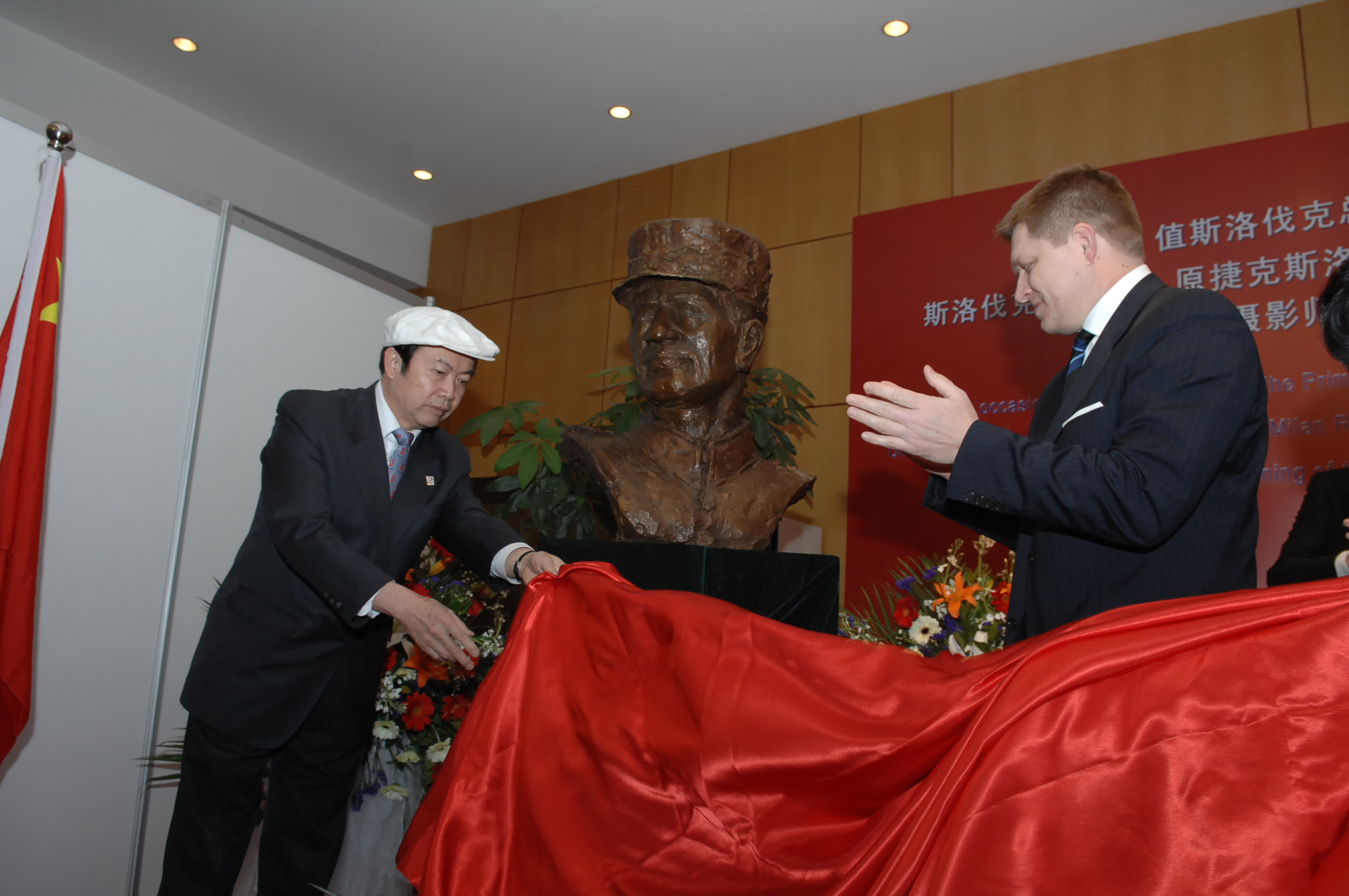 而在斯洛伐克驻华大使官邸今天举行的庆祝活动上,菲佐总理专门为他在2007年访问北京金台艺术馆时在什捷法尼克将军雕塑前留下的与袁熙坤的珍贵合影上签名。而菲佐总理这一动作也定格了中斯友好的历史传承。