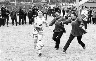 近日,贵州省黔东南苗族侗族自治州榕江县三江水族乡冷衣村开展“庆丰收过瓜节”为主题的农民趣味足球赛,来自三江水族乡的冷衣村、乔来村、乔乌村以及村超显眼包球队的水族、苗族、侗族群众参与其中。图为比赛现场。