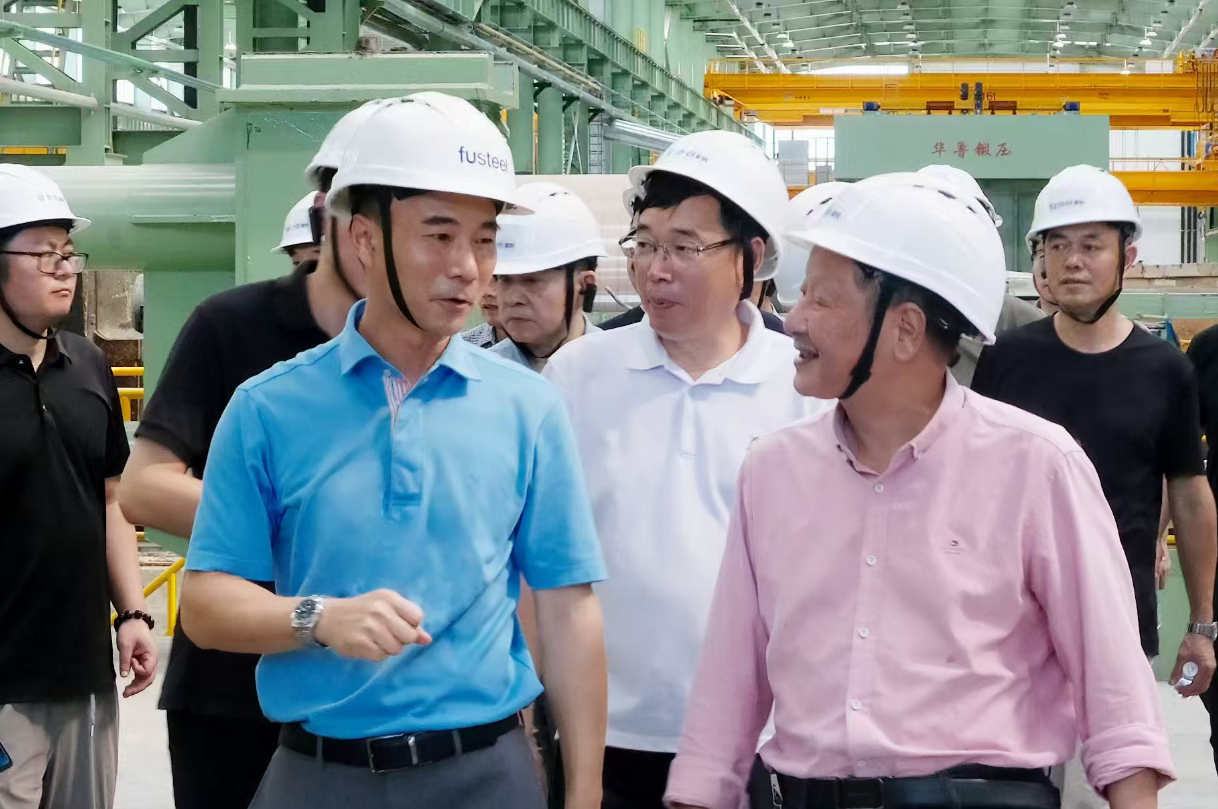浙江湖州南浔区咨询委主任蔡建新一行莅临富钢特板开展走访调研,朱柏荣(前排左一)陪同调研。