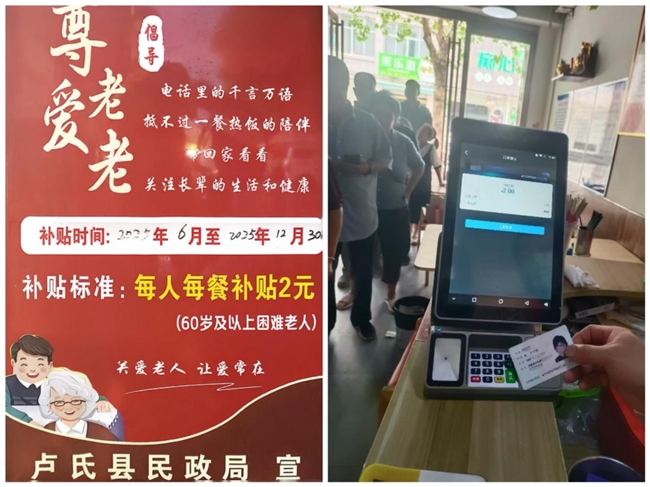 在河南,银联商务基于旗下“如意”养老服务平台,通过上线老人分级分类管理、身份核验、综合支付、精准识别、分类补贴自动判断等相关服务功能,在郑州、平顶山、漯河、濮阳、三门峡等12个地市落地了“养老助餐”解决方案。老年人在首次就餐前,通过银联商务提供的刷脸终端登记人脸及身份证信息,即可完成“人证合一”验证和信息匹配,后续就餐时无需携带任何证件,只需扫一下人脸,通过系统后台自动识别老人身份,并根据老年人年龄段、辖区、特殊人群等信息获取助餐补贴类型,同时完成应付金额计算;老年人刷卡、扫码或扫脸即可完成支付。而地市民政局通过“如意”养老后台则可实现对养老助餐补贴资金的专款专用和全流程监管,从而为当地养老助餐场景建设、政策补贴提供数据支撑。