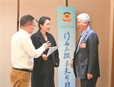 北京市海淀区政协十一届五次会议期间,与会委员们聚焦科技创新、文化建设、民生等议题展开热烈讨论,为海淀区发展集众智、谋良策、聚合力。图为李立东、陈静、张晓东三位委员(从左至右)就“国际生态建设服务海淀区‘十五五’发展”进行交谈。