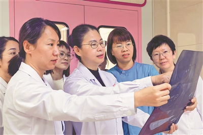 卢伟英(左二)与团队共同研究疑难病例治疗方案。