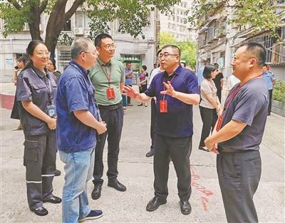 渝中区政协组织委员调研石油路街道五棵树小区老旧燃气管网改造情况。