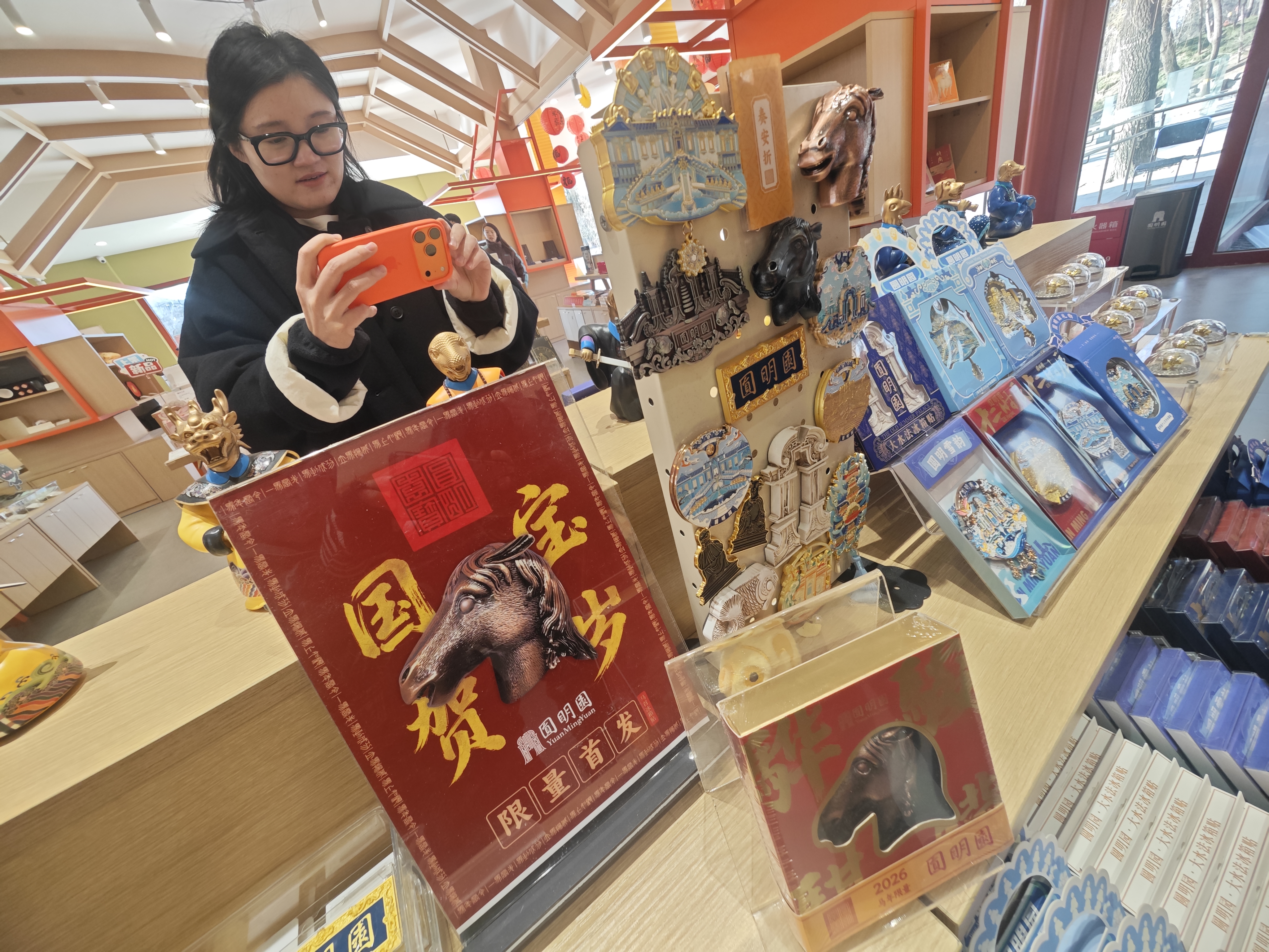 匠心传承——小年生活非遗市集同期举办,文创、手作、互动三大区域构建多元文化空间。互动区中,《胤禛美人图》里的十二美人化身十二花神与游客互动,派发花朵形状刮刮卡。此外,圆明园管理处联合海淀区文联邀请书法家现场书写福字春联,每日限时派送;“马上有福”“马上花开”新春福袋及马首毛绒公仔、丙午款冰箱贴等马年文创同步上线,传递新春祝福。