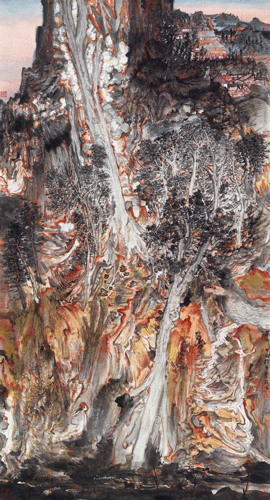 景 山(国画)180×96cm 2024年 /李 岗
