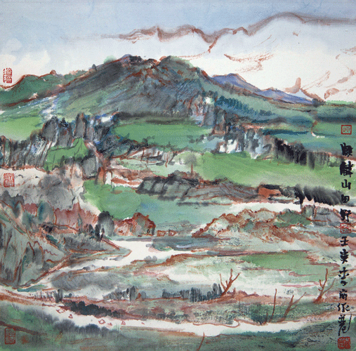 麒麟山田野(国画)34×34cm 2022年 /李 岗