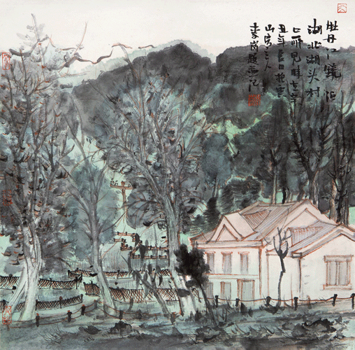 牡丹江镜泊湖北湖头村(国画)34×34cm 2021年 /李 岗