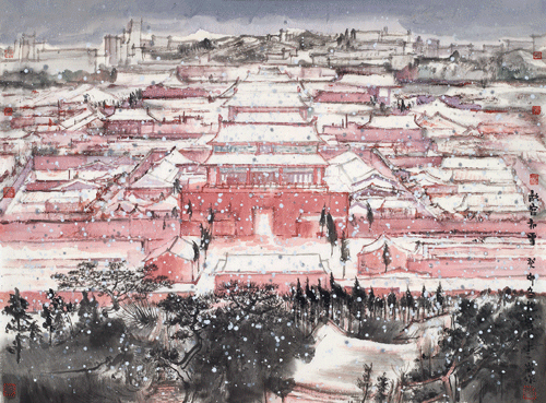 故宫初雪(国画)50×68cm 2023年 /李 岗