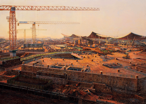 京帆扬起—建设中的副中心综合交通枢纽(油画)129×170cm /刘涛、钟俊 合作