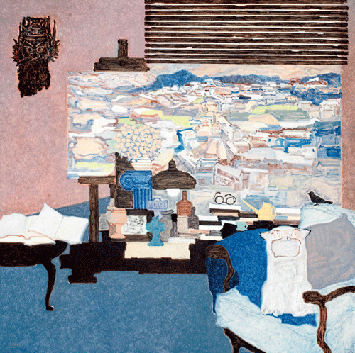 傩影映窗(油画)200×200cm 2025年 /林 飞