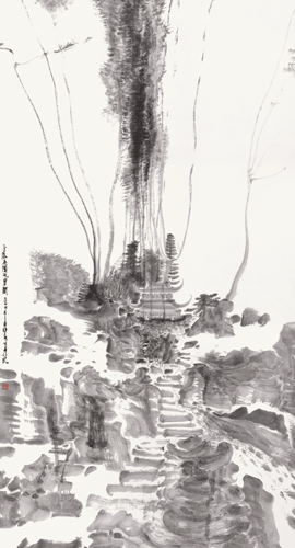 金陵愚园写生之一(国画)180×96cm 2023年 /周京新