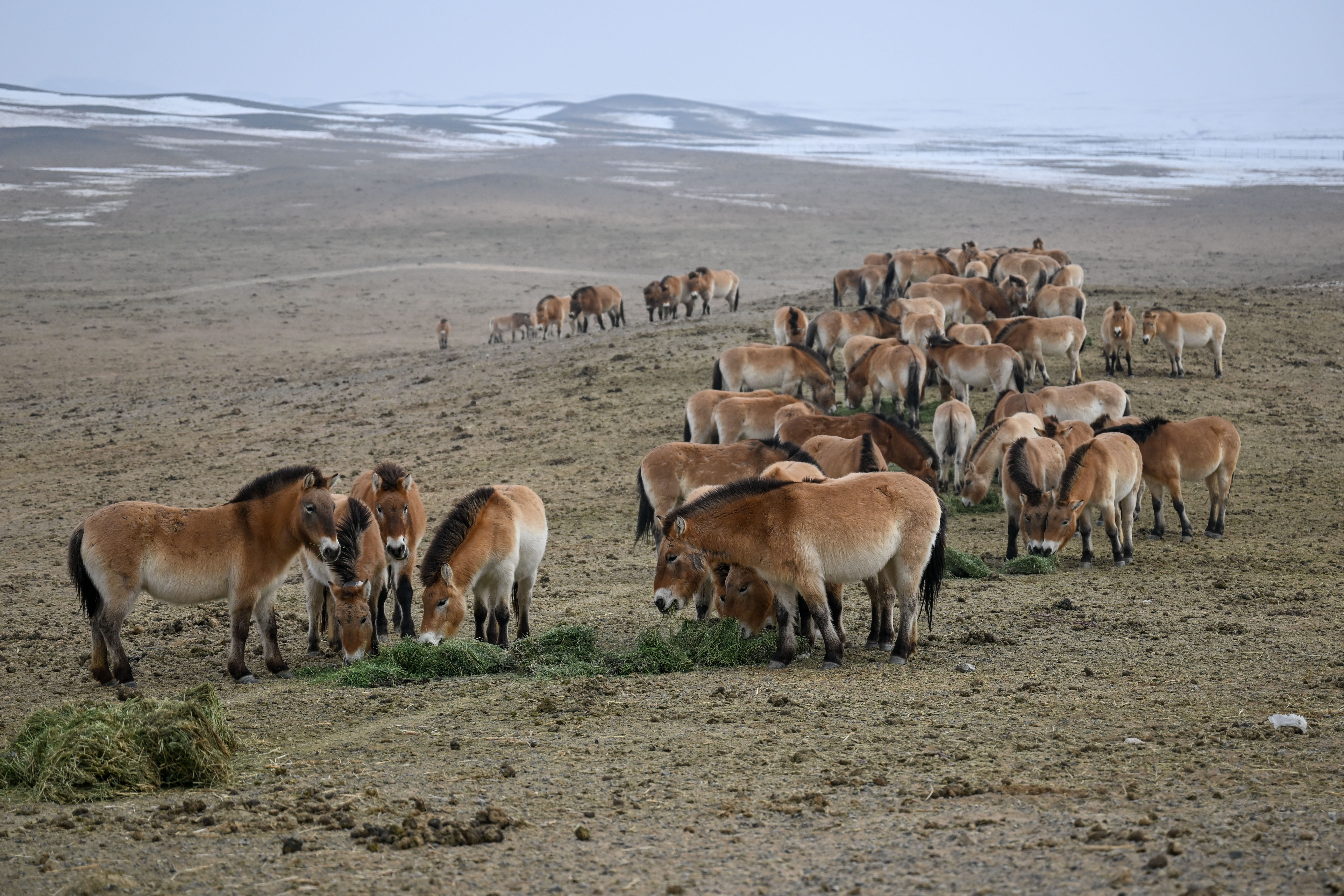 管护员穿梭在雪原沙漠间,驱车踏雪监测马群活动轨迹,排查野外生存隐患,为普氏野马筑牢越冬安全屏障。野马繁育研究所内,饲养员与兽医师24小时值守,细致观察野马饮食起居,监测幼驹健康,精准记录生长状况,为后续繁育和野化训练积累详实的科学数据。