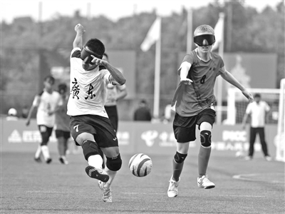 残特奥会盲人足球男子小组赛比赛现场(陈曦 摄)