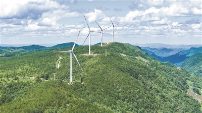 近年来,贵州加快构建新型综合能源基地,建设先进煤电机组,有序发展风电、光伏等新能源产业。图为位于龙里县的风力发电设施。 新华社发