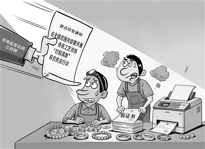 针对目前传统工艺市场中伪造、变造、买卖检验检测报告,利用虚假证书进行虚假营销,以及掺杂掺假、以次充好等现象,市场监管总局、公安部近日联合印发通知,在全国范围内部署开展传统工艺市场“打假清源”联合执法行动,强化系统治理、源头治理,重拳整治行业乱象。