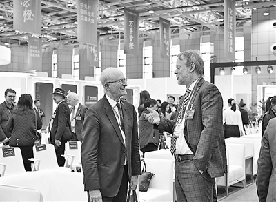 中图:参会嘉宾在2026中关村国际技术交易大会开幕式间隙进行交谈。