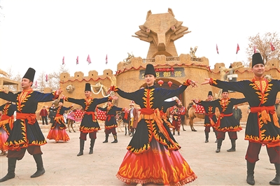 图为新疆阿克苏地区阿瓦提县刀郎部落景区上演非遗刀郎麦西热甫。