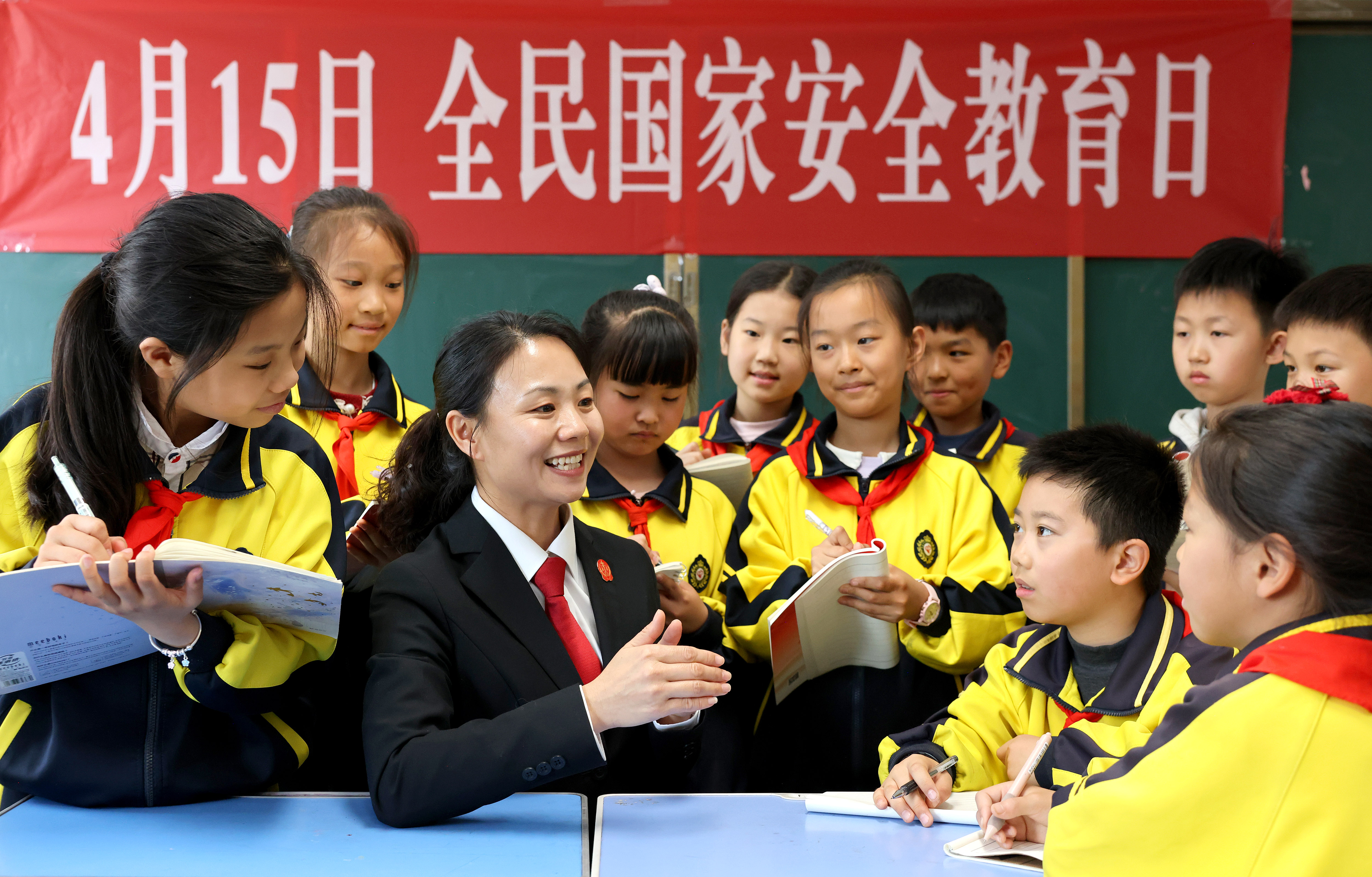 四月十五日是第十一个全民国家安全教育日,山东省枣庄市市中区人民法院组织干警走进校园,开展形式多样的主题宣传教育活动,提高学生们的国家安全意识。 孙中喆 王洪铎 摄影报道