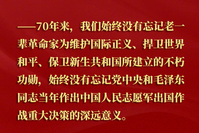 “经此一战,人民军队在战争中学习战争,愈战愈勇,越打越强,取得了重要军事经验,实现了由单一军种向诸军兵种合成军队转变,极大促进了国防和军队现代化。这一战,人民军队战斗力威震世界,充分展示了敢打必胜的血性铁骨!” [详细]