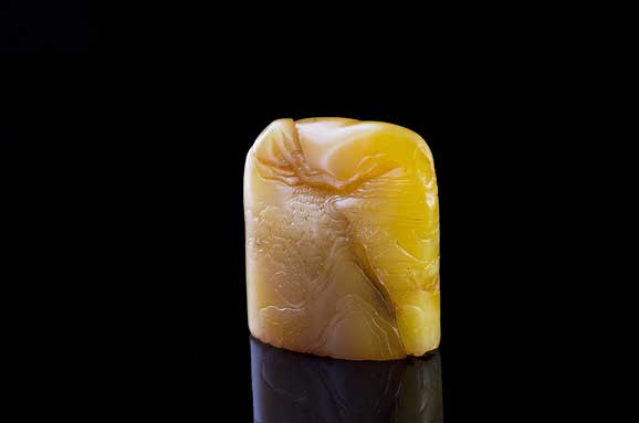 所谓田黄,即寿山石中的特殊品种,因产于福建寿山村坑头溪两岸水田及河流底部的沙砾层中而得名。其质地细腻、温润,手摸有滑感,并常有石皮、红格、罗卜纹等标志。田黄作为我国特有的“软宝石”之一,在全世界范围内只有我国福建寿山一块不到1平方公里的田中出产,因此产量极其有限。需要注意的是,并非任何田黄都具有很高的收藏价值。田黄的质地优劣悬殊,价值高低差异极大,不能一概而论。多数用于收藏与投资的田黄也仅是其中少部分特征明显、各方面俱佳而无可挑剔的上品。因此,如何品鉴上品田黄石材或田黄印章就成为田黄初学者必须掌握的要领。