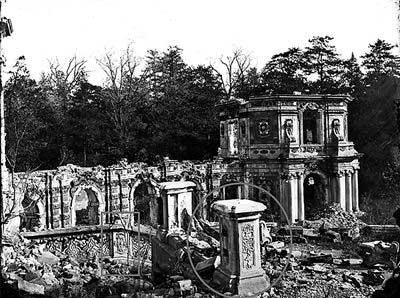 1873年拍摄的谐奇趣残迹,圆圈处就是类似的石刻构件