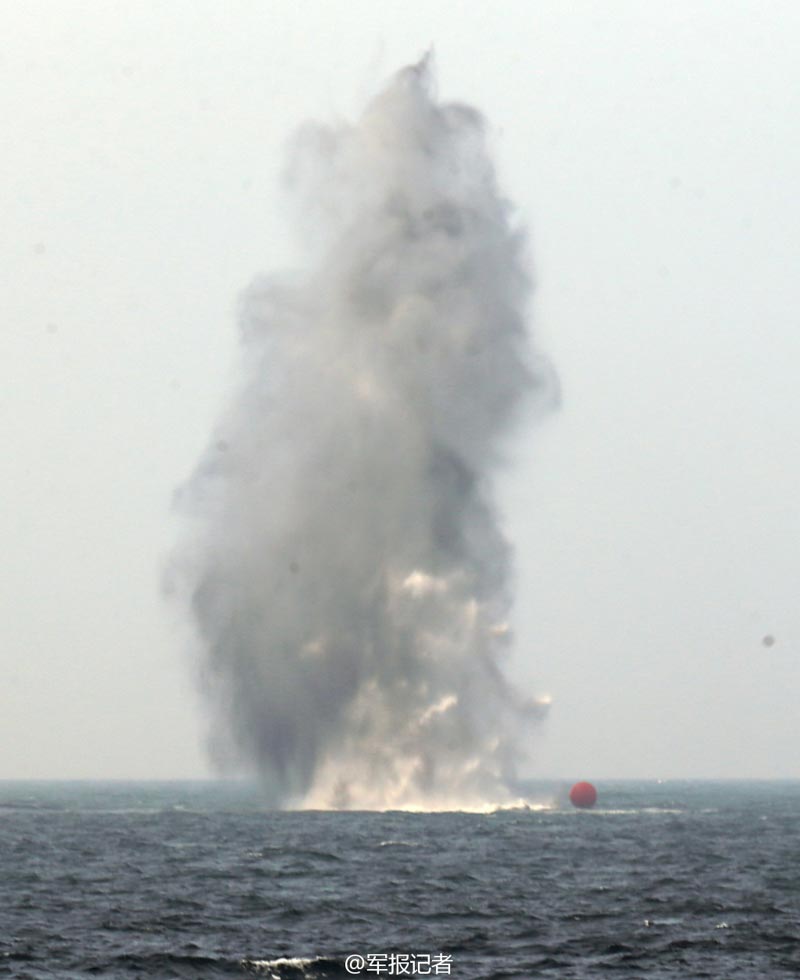 5月24日下午1时许,东海某海域突然间炮声四起,中俄联合编队6艘舰艇进行了对"舰"射击、火箭深弹攻"潜"、对空实射等演练,下午2时50分,随着海上实际使用武器演练结束,历时3天的中俄"海上联合一2014"军事演习海上课目全部完成。