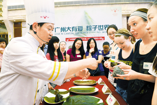端午节临近,连老外也来抢着感受节日气氛。昨日上午,由广州市政府新闻办等单位联合主办的“广州大有爱,粽子世界杯”2014广州酒家包粽大赛火热开赛。14名来自美国、英国、德国、西班牙等国的友人参与,并邀请了近百名市民担任评委。