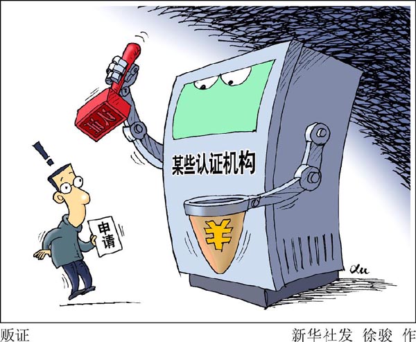 新华社记者经过数月调查暗访,发现在企业质量管理认证、玩具业产品认证、农产品有机认证三大领域,认证变“认钱”的“潜规则”盛行,弄虚作假走过场司空见惯,一些认证已沦为部分企业自我美化的“假面具”。