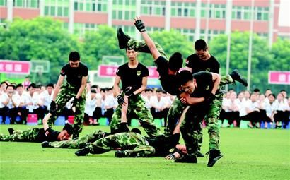 “一个柔弱的女生,单手劈碎酒瓶。这需要多大的勇气!”在演习现场,表演单手劈碗、劈酒瓶的空乘班学员黄小芳说,刚开始不一定劈得开,有时候手都劈肿了。黄小芳称,她至少劈碎了100多个碗和酒瓶。“我们一般都是在课外时间进行训练,”队员董倩介绍,无论是在烈日下,还是在暴雨中,他们都会照常严格训练匍匐前进、空翻、格斗、擒拿等技能,以及挎枪摆臂练习、防暴器械使用等,“非常地辛苦!”董倩说,从大一开始,学院就开设了军事训练、跆拳道等特色课程,塑造了他们强健的体魄、超强的反恐能力和快速的反应能力,很多动作,跆拳道课程里都有,“现在学起来还是比较轻松。”