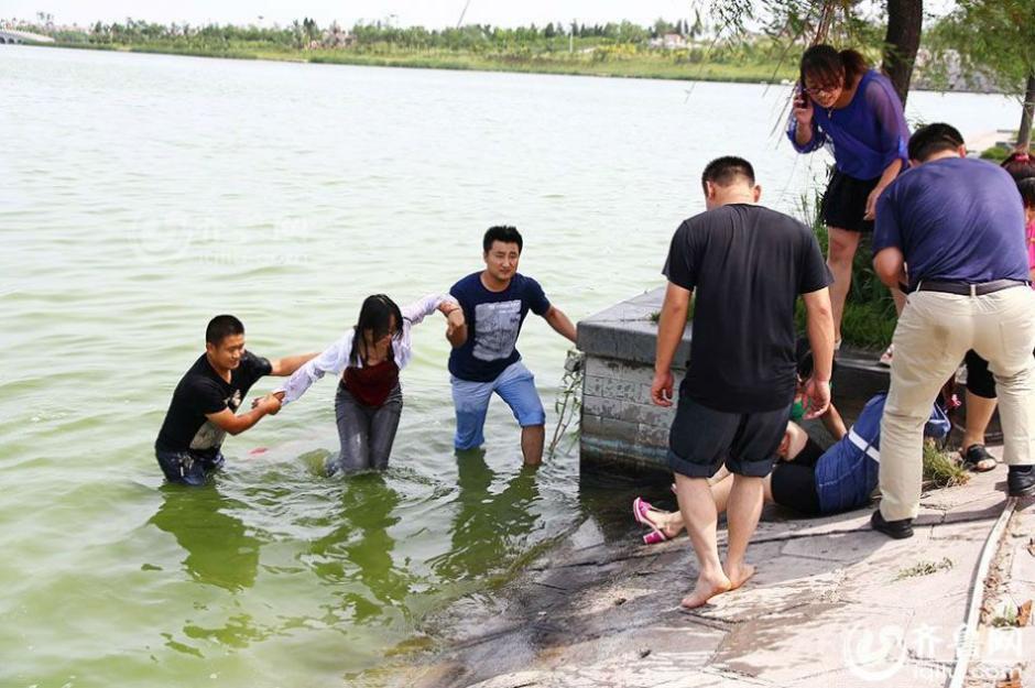 实拍山东东营女孩跳水救人全程 上岸后悄然离去(图)