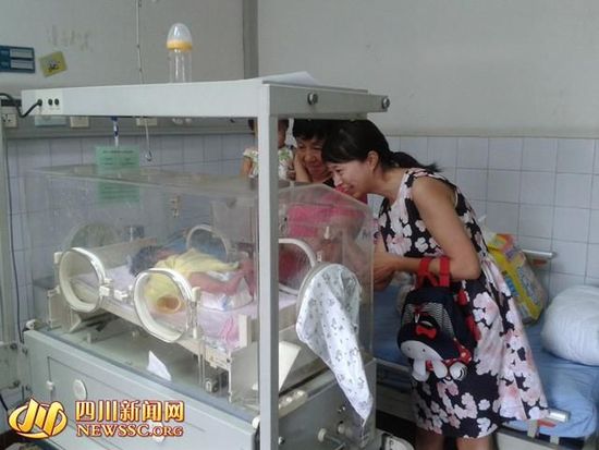今天,四川新闻网记者赶到广汉市第三人民医院,看到弃婴正在四楼的儿科保温箱里,穿着黄色的小衣服,眼睛紧闭,酣然入睡,小手小脚不时会动一下。旁边一名医院的女护工正在对其精心照顾。