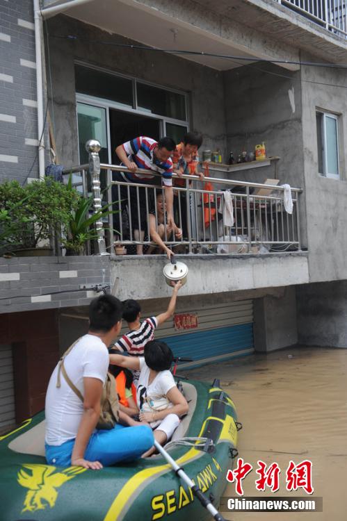 2014年8月20日,浙江丽水遭遇暴雨突袭。丽水城区、部分乡镇及道路受淹,青田县腊口、碧湖平原吴村圩多处群众受洪水围困。梁臻 摄 图片来源:CFP视觉中国