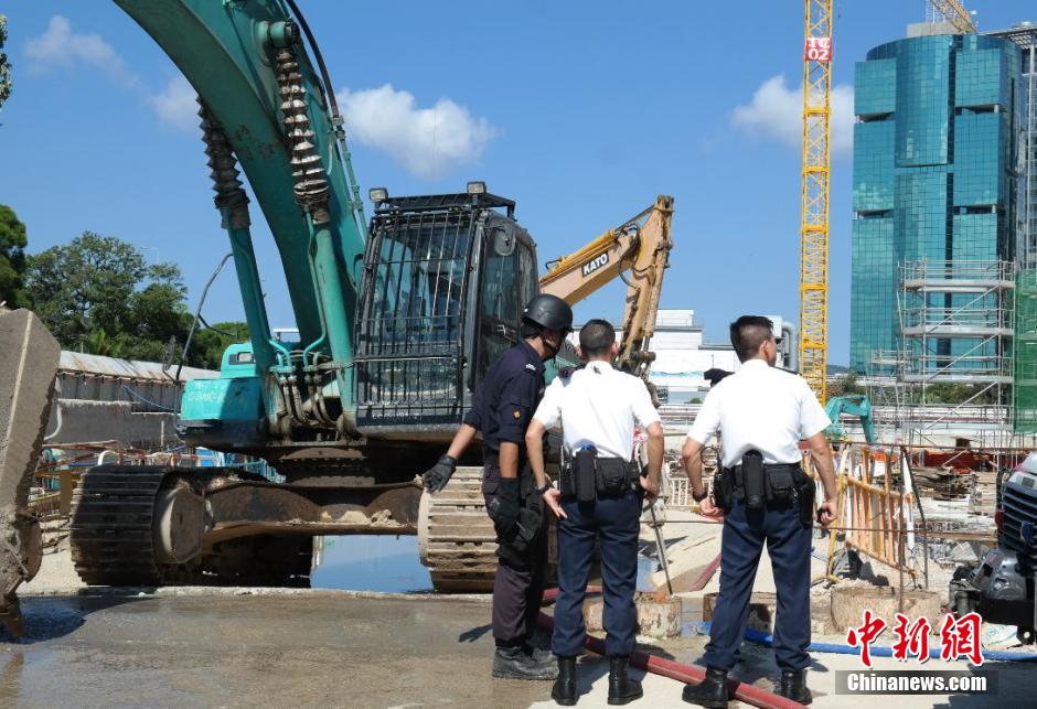 8月26日,香港北角海港道一个建筑工地,发现疑似战时炸弹,大批警方爆炸品处理课人员到场视察,消防员亦到场戒备。受事故影响,北角码头周围一带需要暂时封闭。中新社发 张宇 摄