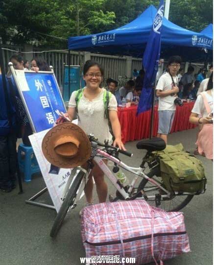 8月27日,18岁的陆享璇终于抵达西南交通大学。和其他新生相比,她的“财产”少得可怜:一辆自行车和几个轻便小包。为了“做一件自己都为之惊叹的事”,从8月4日开始,这个福建女生决定骑车上大学。24天里,她沿国道骑行2000多公里,而途中花掉的6000多元,全是她暑假里给小孩补课挣来的。