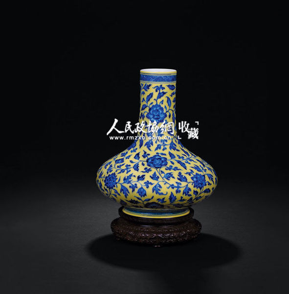 清雍正 黄地青花缠枝花卉纹荸荠瓶