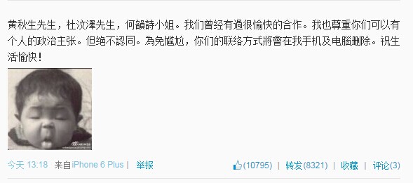 王晶狠删黄秋生等人联系方式 微博发文与其断交(图)