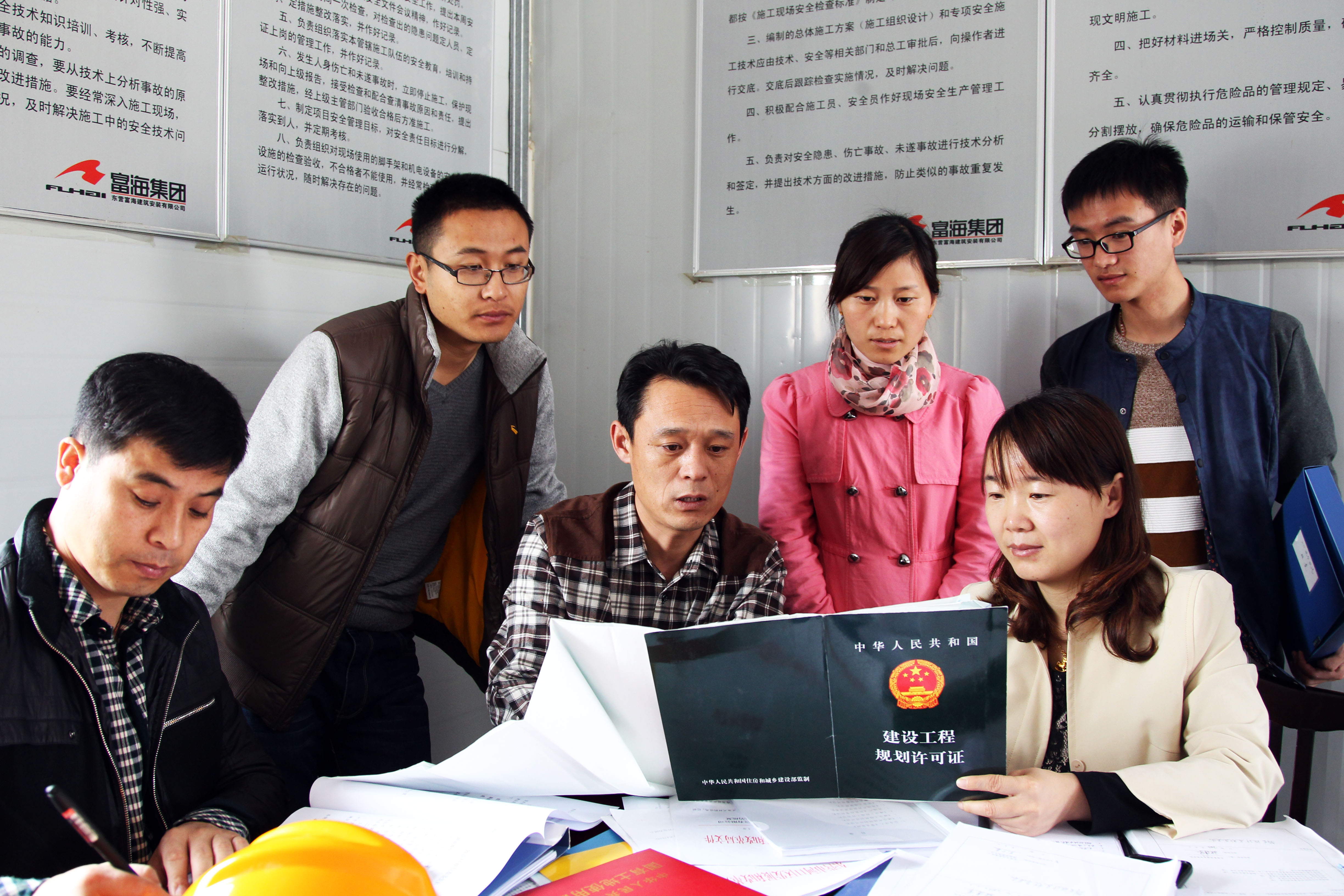 山东省东营市河口区采纳政协委员建议开展“百日行动” 集中检查活动,依法专项治理拖欠农民工工资现象,维护农民工合法权益,促进社会和谐稳定。图为,日前该区住建局执法大队工作人员正在对富海集团西湖印象建设工程项目部依法检查农民工工资支付及档案管理情况。韩荣华摄影报道