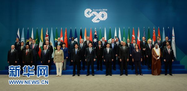 11月15日,二十国集团领导人第九次峰会在澳大利亚布里斯班举行。国家主席习近平出席会议并发表题为《推动创新发展实现联动增长》的重要讲话。这是习近平主席同与会领导人合影。 新华社记者 马占成 摄